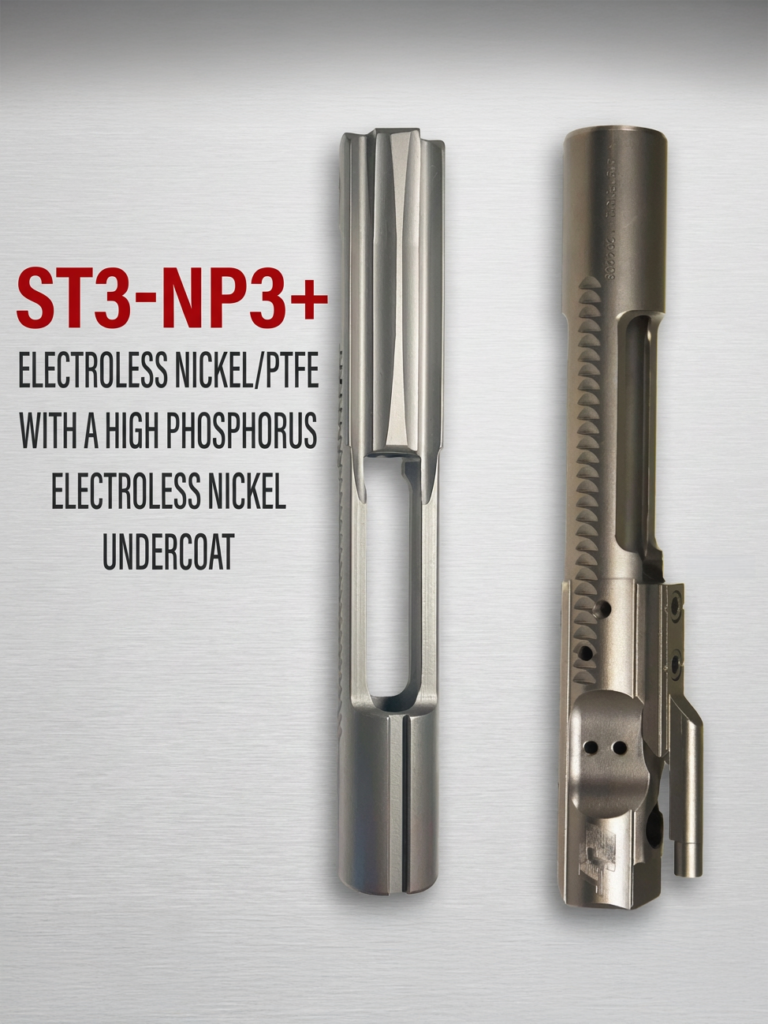 The ST3 features NP3+ (Electroless Nickel / PTFE with a High Phosphorus Electroless Nickel undercoat) applied by industry leader Coating Technologies.